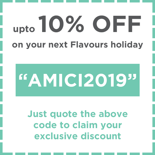 You’ll receive 5% discount on your second holiday and 10% discount on all subsequent Flavours holidays after your second.
