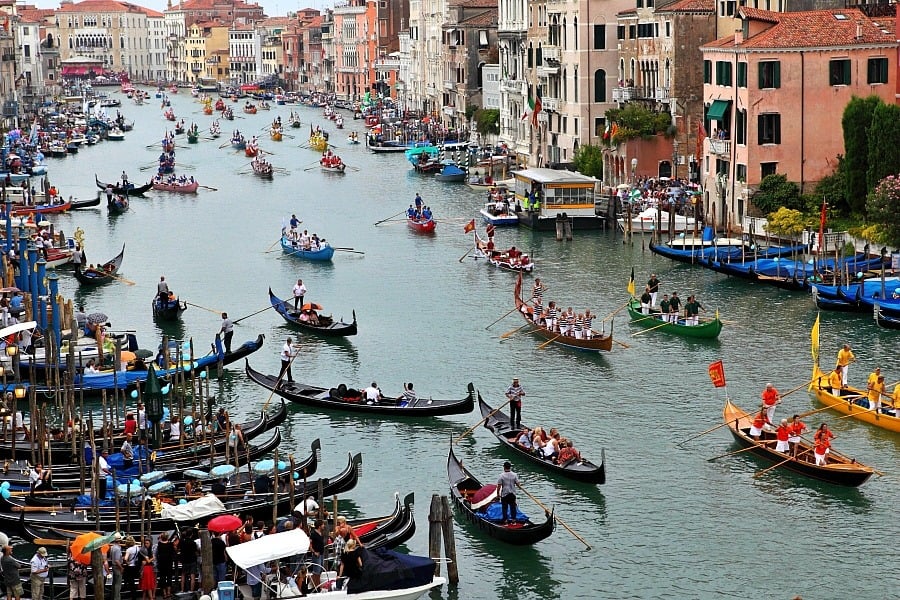 Over 120 brightly decorated Gondolas and small boats parade through the Grand Canal, manned by crews who often dress in 16th century style costume.