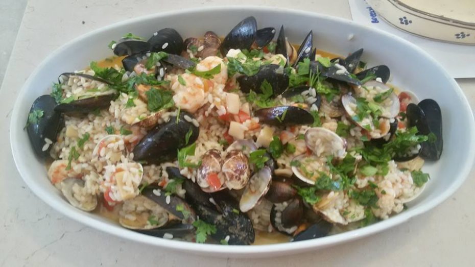 Put the rice in the marinara sauce (with the mussels, clams, squid etc) and stir everything together, adding more wine if the rice is too dry.