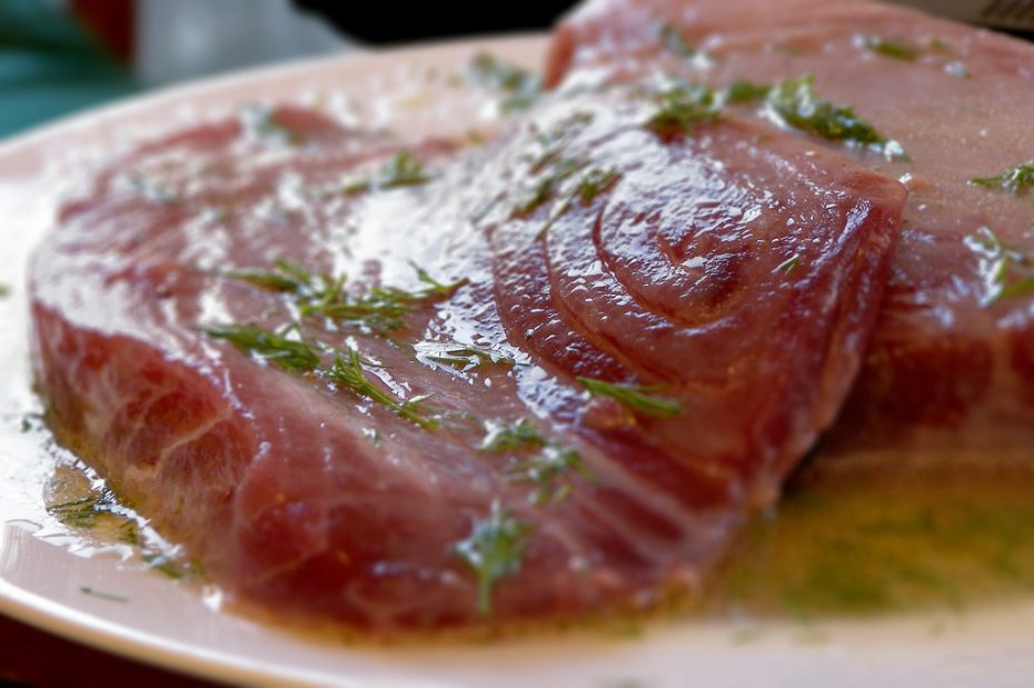 1. Thinly slice the tuna into steaks