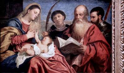 Titian was first to become famous for his religious works. His Assumption of the Virgin (Assunta) for the Santa Maria Gloriosa dei Frari, broke with recent traditions and demonstrated his amazing ability to combine dramatic force with dynamic tension.